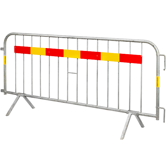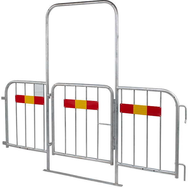 Gallergrindar i galvaniserat stål för temporära avstängningar eller inhägnader av exempelvis byggarbetsplats, evenemang, gågata eller andra enklare avspärrningar. Fästes enkelt i varandra, vridbara 90 grader.