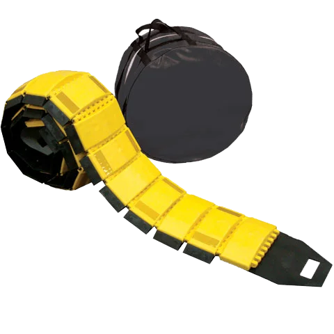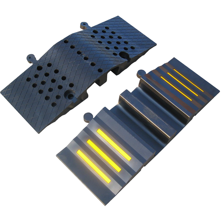 Få ner hastigheten och säkerställ lägre hastighet med tillfälliga gummifarthinder, kabelöverkörningsskydd, kabelbryggor, tröskelramp.