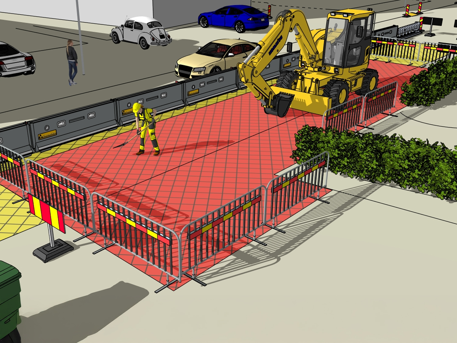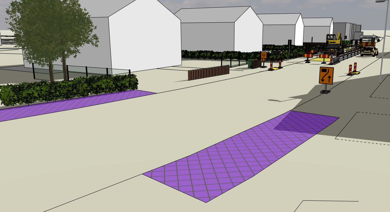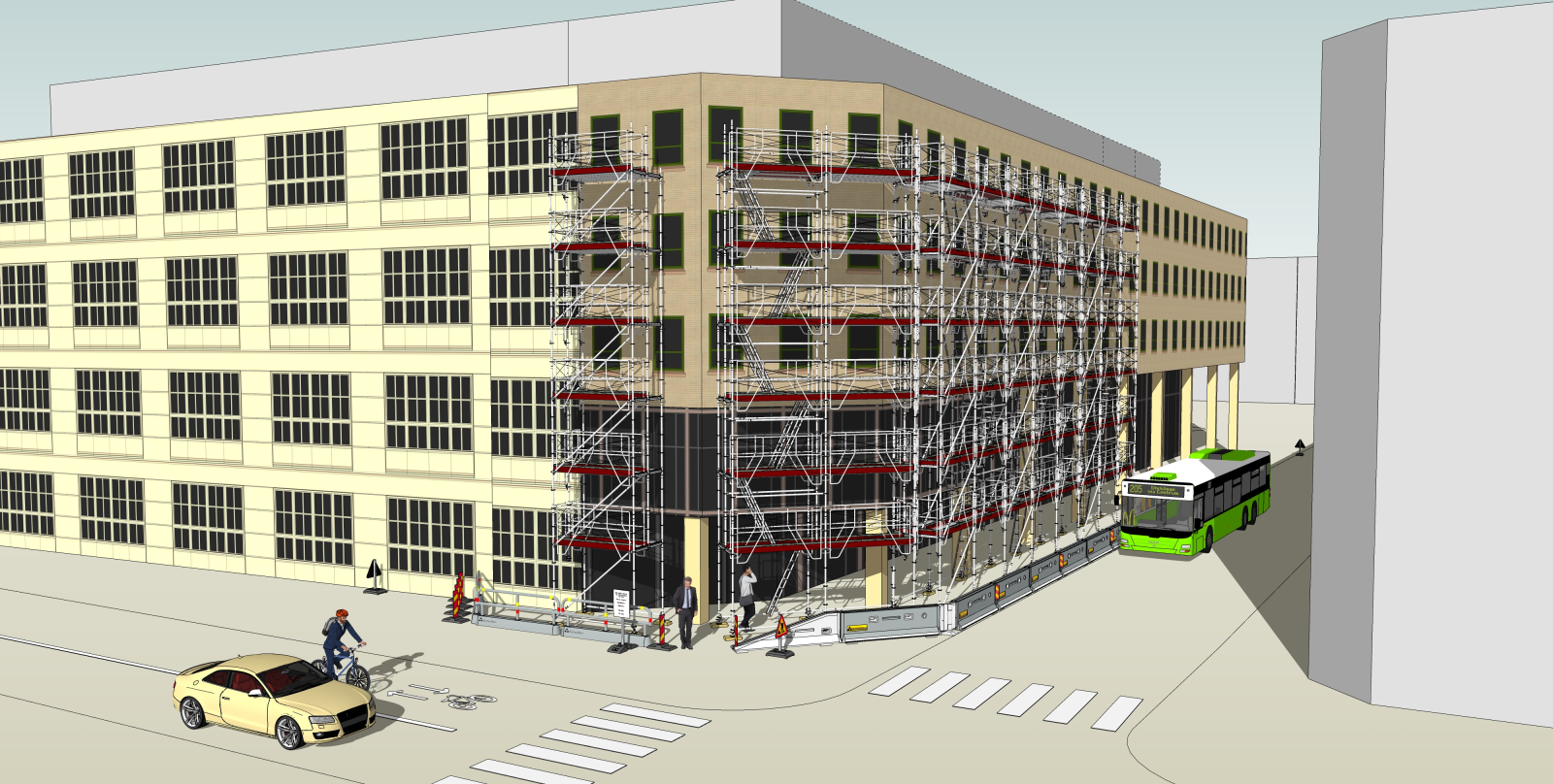 TA-planen i vårt exempel innefattar ingen byggställning eller skylift men en fråga vi ofta får är: "Vad gäller när man etablerar en byggställning/skylift (personkorgsarbeten) intill trafik"?