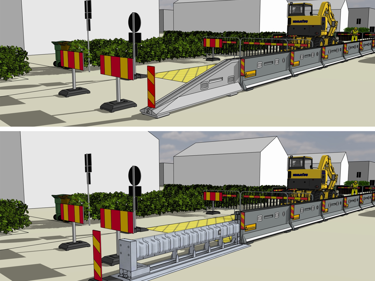 När man ställer ut barriär så kravställer väghållningsmyndigheten ofta att man ska påbörja och avsluta barriären på ett trafiksäkert sätt.